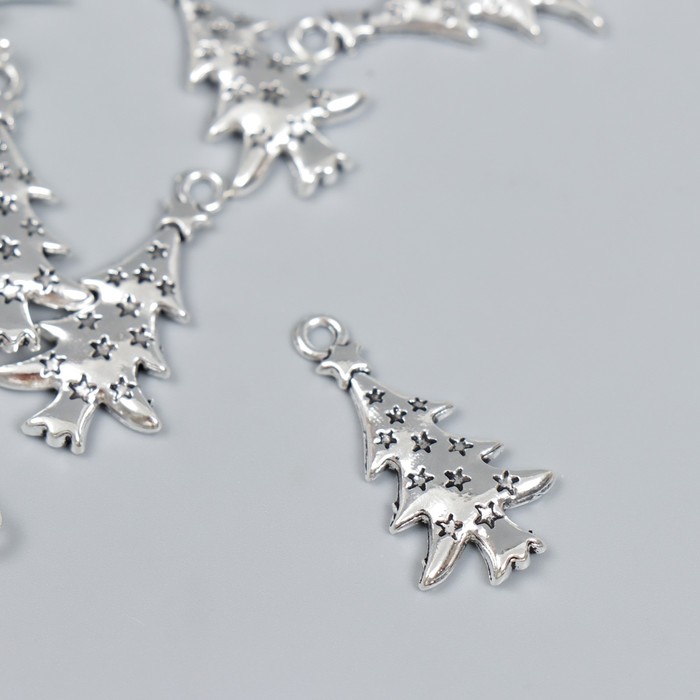 Подвеска металл "Ёлочка со звёздами" под серебро 2,7х1,4 см 15 шт