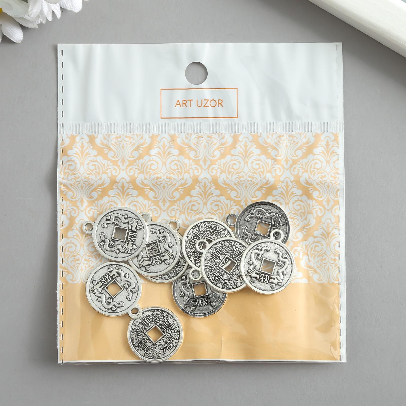 - Подвеска металл "Китайская монета с драконами" под серебро 2,3х1,9 см 10 шт
