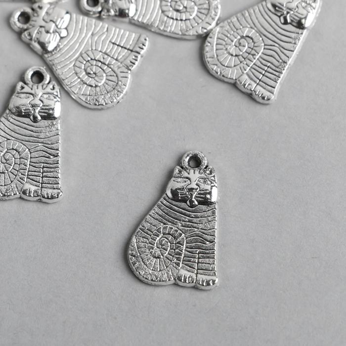 Подвеска металл "Кот, хвост колечком" под серебро 5182 2,1х1,3 см 15 шт